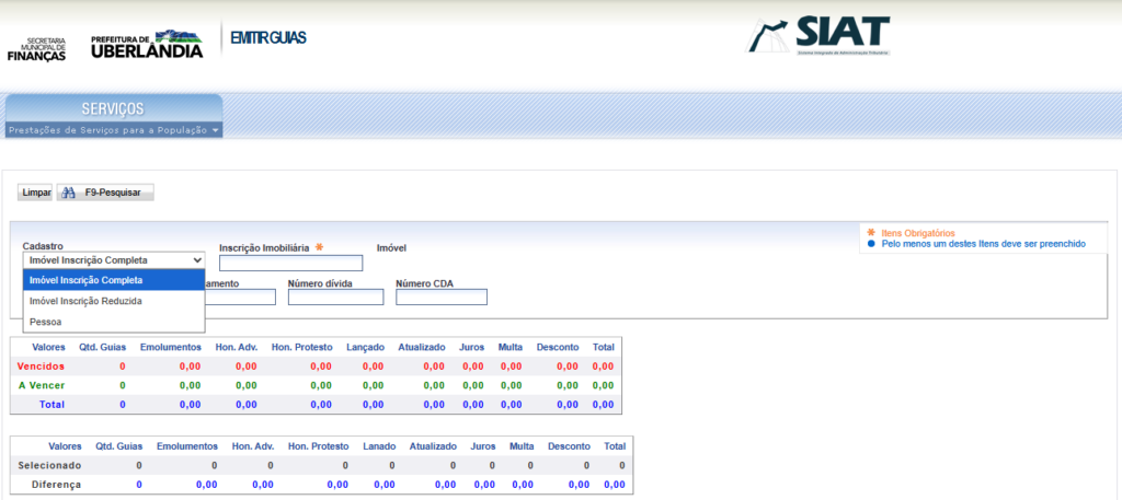 - Verifique se há débitos pendentes e gere a guia para pagamento.